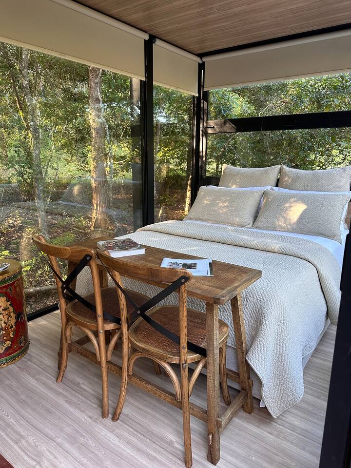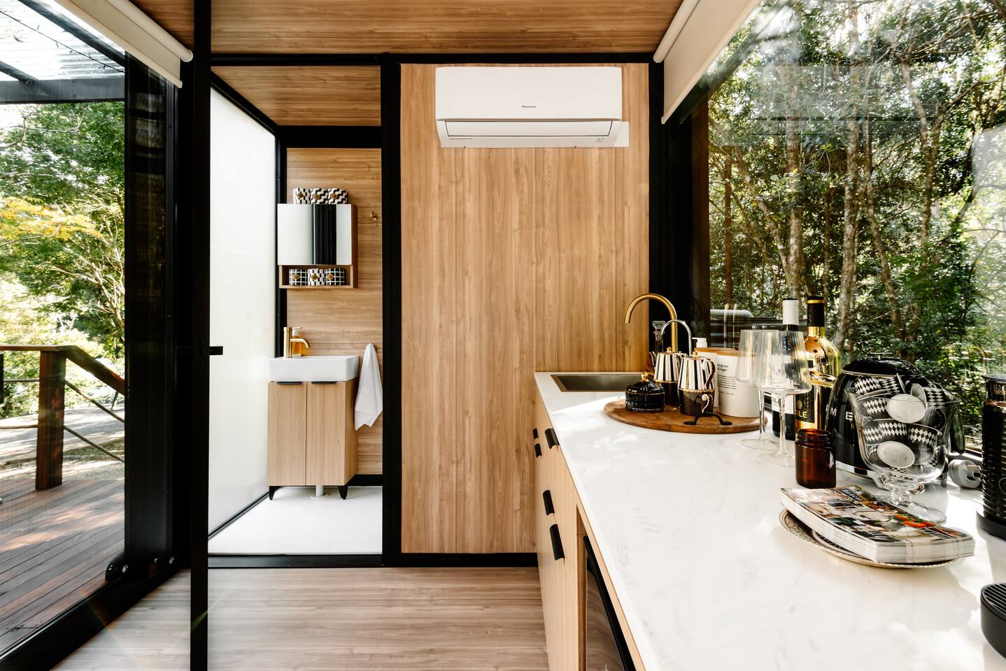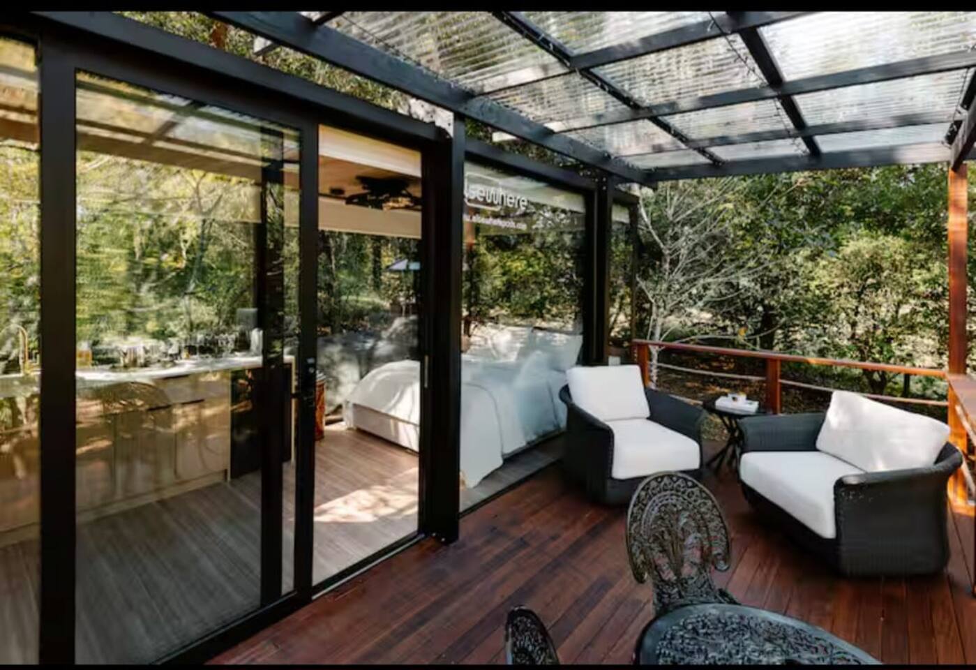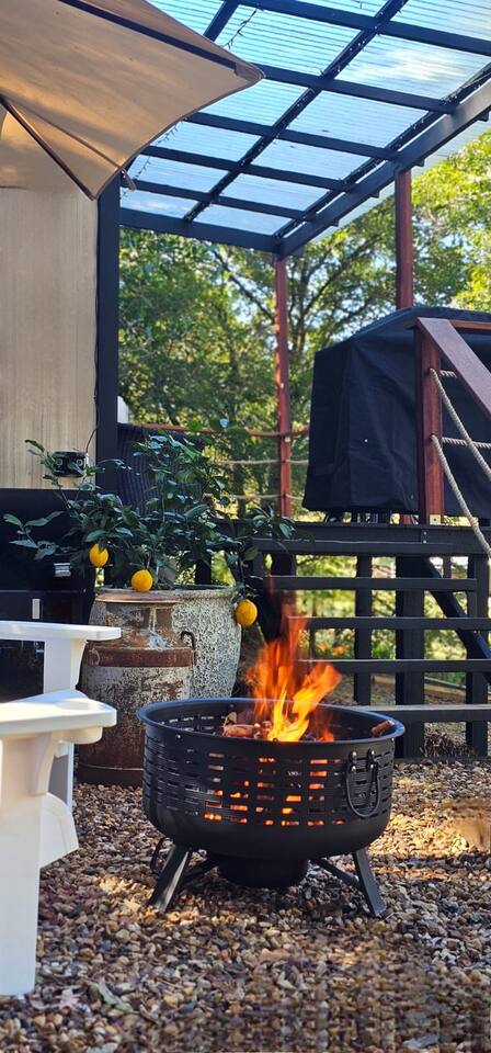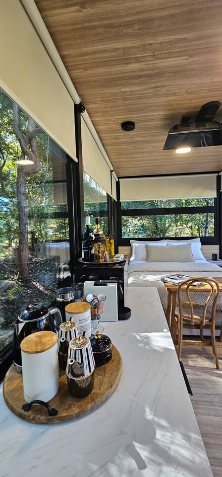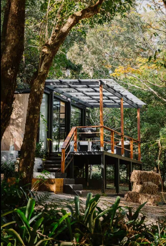 Escape to The Elsewhere Pod, a stunning retreat nestled in Peachester’s tranquil hinterland. Designed for two, this off-grid sanctuary at Flat Road blends sustainability with modern luxury, inviting you to unplug and reconnect with nature in unparalleled comfort. 🌿 The Space: Thoughtful Design Meets Nature Step into a world where every detail is crafted for your peace and pleasure. Our pod features: Plush queen bed with luxe linens for ultimate comfort. Private ensuite with a modern, eco-friendly incinerator toilet Compact kitchenette equipped with all essentials for light meals. Nespresso coffee machine with pods & organic Love Tea selection Split-system air conditioning ensuring year-round comfort. Floor-to-ceiling glass walls offering breathtaking, immersive forest views. Private deck with a BBQ, dining area, and a fire pit – perfect for starlit evenings. Whether you're curled up with a book or enjoying wine by the fire, this space is designed for pure relaxation. The eco pod is set on a spacious property alongside our farmhouse, offering guests to relax and enjoy the natural surroundings. With wide open land, fresh country air, and a peaceful setting, you’ll feel tucked away in your own Eco Pod while still being part of a beautiful Bahche Farm. 🛶 Eco-Luxury Living: Sustainable & Stylish Experience true eco-luxury. Our pod operates fully off-grid, built with reclaimed materials and water-efficient systems, showcasing a conscious commitment to the environment without compromising on sophistication. It’s where simplicity meets elegance in the heart of nature. 🍽️ Optional Gourmet Catering by Olive Thyme Elevate your stay with gourmet catering from Olive Thyme in Albion, our award-winning restaurant. From handcrafted meals to personalized menus, we can bring a culinary experience directly to your pod. Just send us a message to arrange. 🗺️ Explore the Sunshine Coast Hinterland Your tranquil base is perfectly situated for exploring the best of the region: 15 min to Maleny: Charming cafes, boutique shops, and scenic rainforest walks. 20 min to Glass House Mountains: Iconic hikes and stunning lookouts. 20 mins to Montville Kondalilla National Park 25 min to Australia Zoo: A must-visit for animal lovers. Discover nearby waterfalls, serene creeks, and picturesque scenic drives. 🛌 Ideal For This retreat is perfect for couples, solo travelers, digital detoxers, eco-conscious adventurers, and anyone seeking a private, peaceful, and immersive escape into nature. Ready to unwind, recharge, and truly experience the best of the Sunshine Coast Hinterland? Book your stay today and discover your serene Bahche.